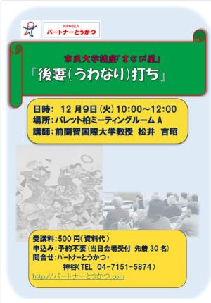 NPO法人パートナーとうかつ 市民大学講座まなび屋 演題:「後妻(うわなり)打ち」 実施日:12月9...