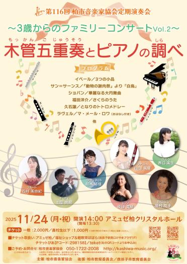 文化・芸術・スポーツ公開日:2025年11月19日第116回柏市音楽家協会定期演奏会開催日:2025年11月24日(月)