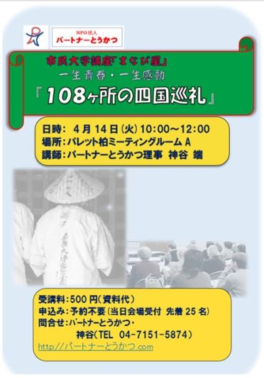 演題:「108ヶ所の四国巡礼」