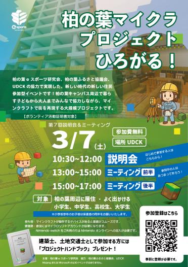 まちづくり公開日:2026年02月18日7柏の葉マイクラプロジェクトミーティング(第7回)開催日:2026年03月07日(土)