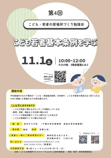 社会教育公開日:2025年10月10日第4回こども・若者の居場所づくり勉強会「こども・若者基本条例を学ぶ 」